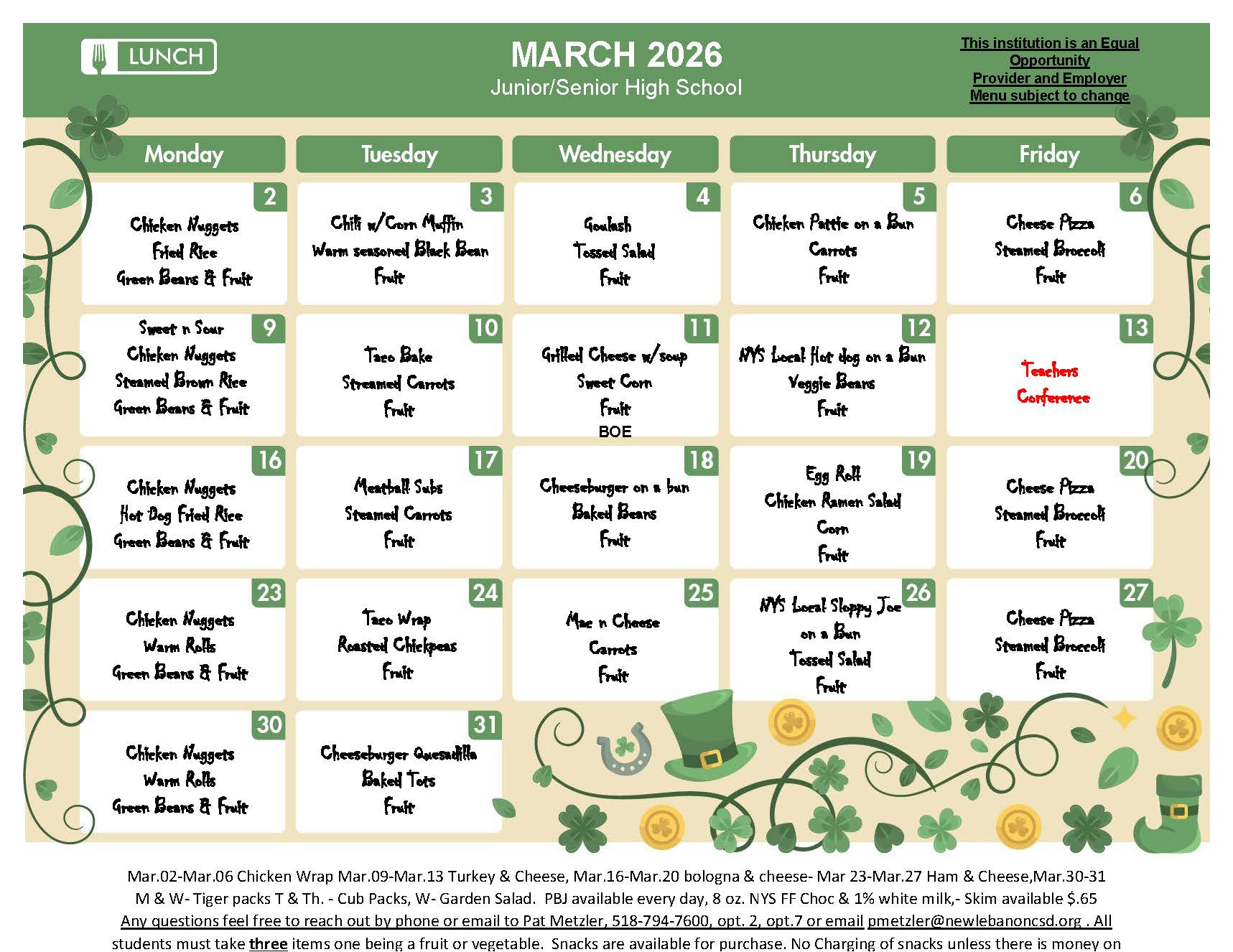 Any questions or concerns feel free to contact Pat Metzler, pmetzler@newlebanoncsd.org, 518-794-7600, opt. 2, opt. 7