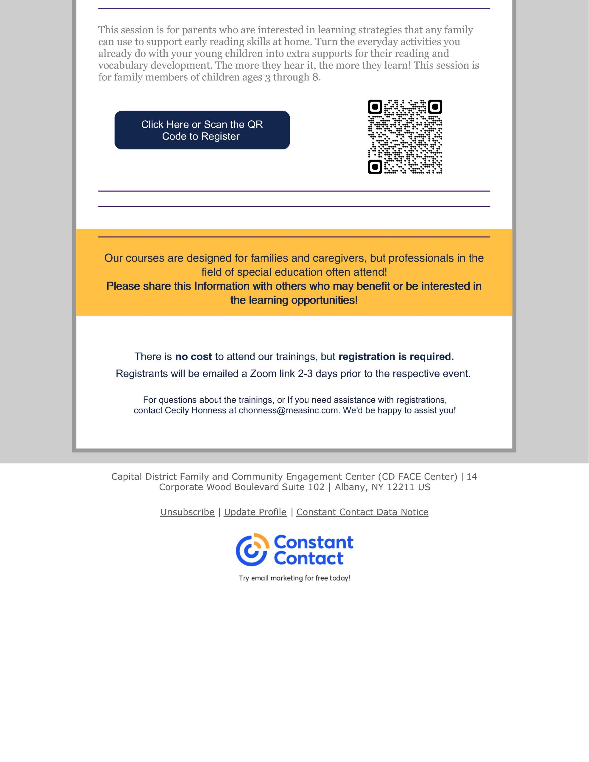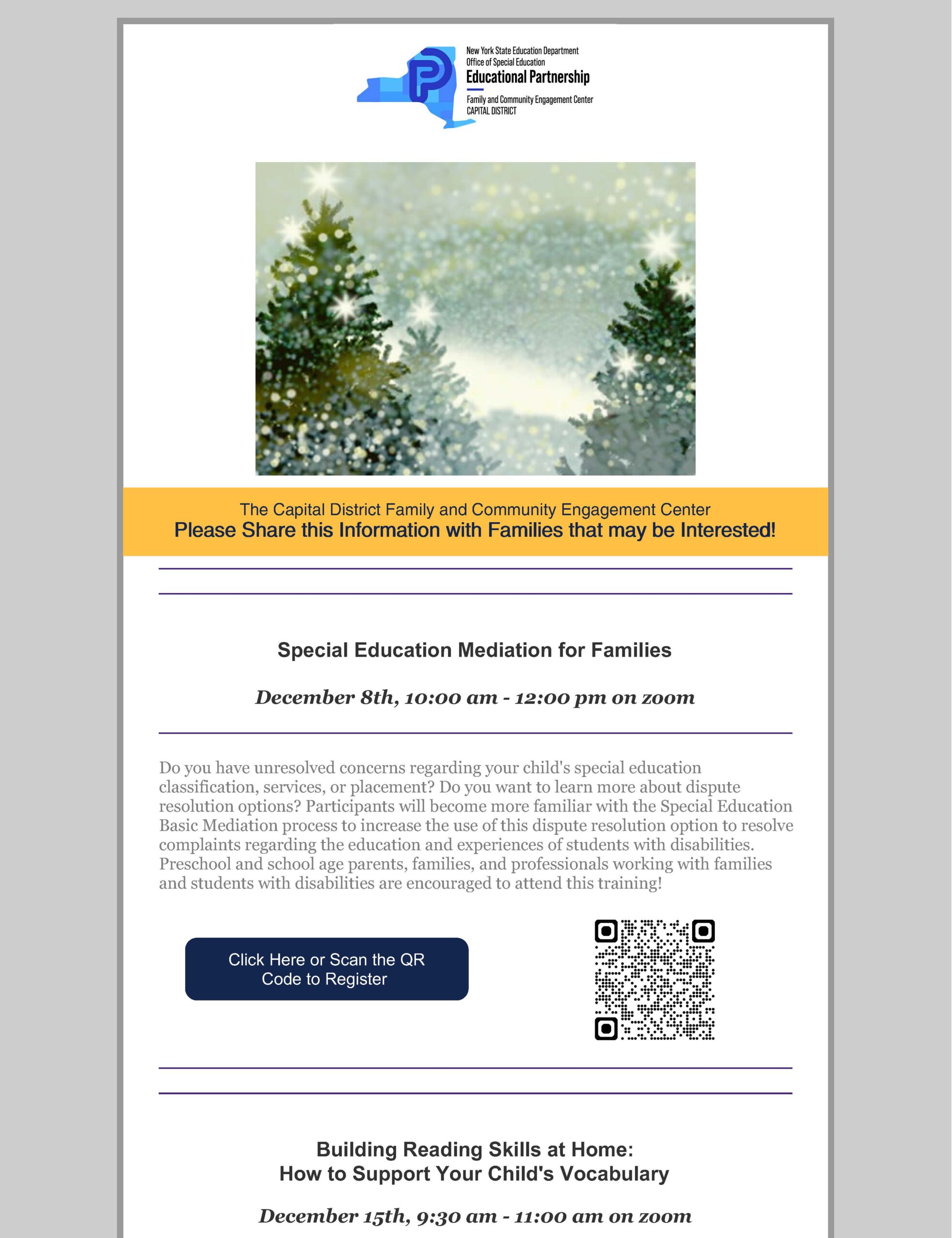 The Capital District Family and Community Engagement Center is offering two free virtual trainings for families this December.
